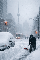 Side streets disappeared first. You couldn’t tell where the sidewalk ended and the road began. Shovels were working overtime, snowbanks were winning every round, and neighbours who’d never spoken suddenly became shovel partners. That’s peak Toronto energy right there.